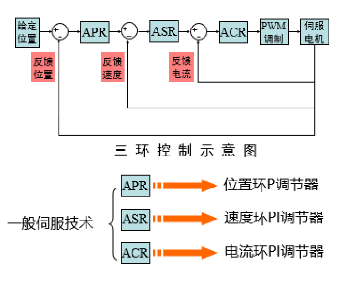 伺服是一個閉環(huán)系統(tǒng),它是由電流環(huán)、速度環(huán)、位置環(huán)組成,位置環(huán)的輸出作為速度環(huán)的給定,速度環(huán)的輸出又是電流環(huán)的給定。